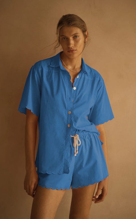 Aur Ocea FIORDALISO Scallop Short Sleeve Shirt $220 + FIORDALISO Scallop Drawstring Short $200 (more colours available)