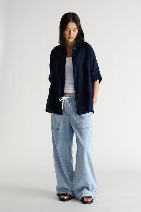 Under $50 and washes well — the perfect lightweight, relaxed material. Ideal to throw on over swimwear.